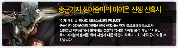 ▲ 인생 뭐 별거 있나? 이렇게 사는거지 결전의 시간은 점점 다가오고 있었다. 토요일 오후가 되자 ‘아이온’은 마지막 2일을 즐기려는 게이머로 북적이기 시작했다. 특히 인구수가 많은 천족 지역은 렉이 걸릴 정도로 많은 게이머들이 몰려 천족의 위상을 과시했다. 그리고 드디어 작전이 발동되었다! “이번 한 판에 천족의 자존심이 걸려있다!” 마족들은 대강 눈치는 채고 있었지만 아직까지는 천족의 공세를 어비스에서 벌어지는 일상적 충돌 정도로 알고 있었다. 어차피 어비스에서는 매일같이 벌어지는 게 싸움질 아닌가? 마족은 느긋한 마음으로 요새에 틀어박혀 천족의 공세를 방어했다.