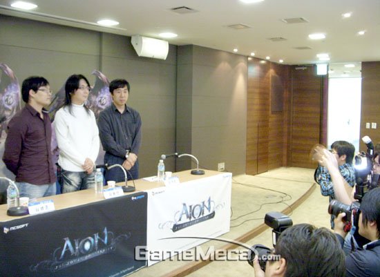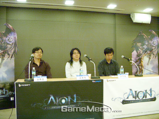 엔씨소프트는 23일 오전, 오는 11월 11일 자사의 대작 MMORPG ‘아이온’의 오픈베타테스트를 시작한다고 밝혔다. 이어 같은 날 오후 4시 서울 삼성동 본사 R&D센터 13층 대회의실에서 ‘아이온’ 개발진들과 기자들 사이의 간담회를 진행했다. 이 자리에는 지난 4년 간 ‘아이온’의 개발을 주도한 지용찬 기획팀장, 김형준 그래픽팀장, 심마로 프로그램팀장이 참여해 약 1시간 30분 동안 질의응답에 나섰다.