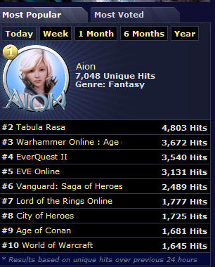 등극했다. ‘타뷸라라사’는 MMORPG닷컴의 인기순위에서 한달 이상 1위 자리를 지켜왔지만, 결국 ‘아이온’의 기세에 큰 투표차로 2위로
