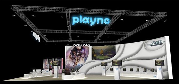 ‘Game cafe’를 컨셉으로 하고 있는 플레이엔씨관은 거울, 투명유리, 크리스털 등의 소재를 활용해 카페와 같은 편안한 분위기에서 엔씨소프트의 신작 게임을 즐길 수 있도록 표현했다. 올록볼록한 페브릭과 반짝이는 스틸 소재, 다채로운 색상의 LED조명, 금속 폴리싱과 비즈를 이용한 장식물로 아이온과 러브비트의 고유한 개성을 반영했고, 관람객의 공간 이동에 편리하도록 유선형 동선을 채택했다.
