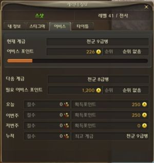 [어비스 포인트창] [어비스 포인트 획득 대상] 1. 적국 PC [어비스 포인트 소모] 1. 요새 경비병 NPC에 의한 사망