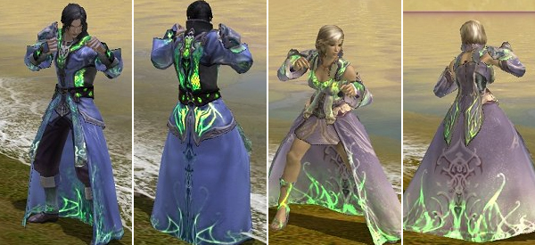 뭐니뭐니해도 유니크 아이템의 가장 큰 특징은, 평상시와 전투시, 그 모양이 달라진다는 것. 즉, 전투모드로 들어가게 되면 평상시와는 다른 모습으로 외관이 변형한다. 다음은 현재 필드상에서 드랍되고 있는 25레벨 제한 유일 등급 방어구의 착용 스크린샷이다.