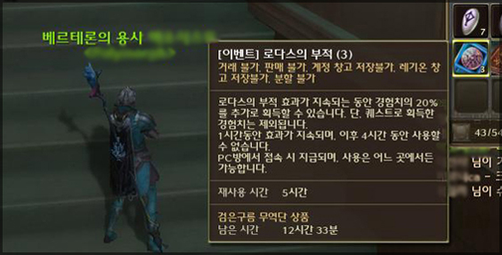 20% 추가 획득)를 사용한다면 경험치 효율은 배가 될수 있겠지요.