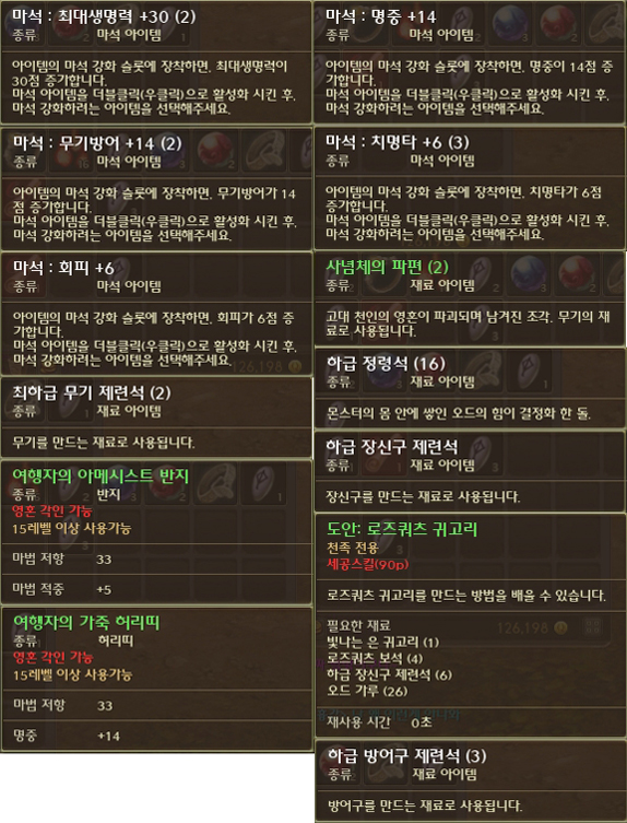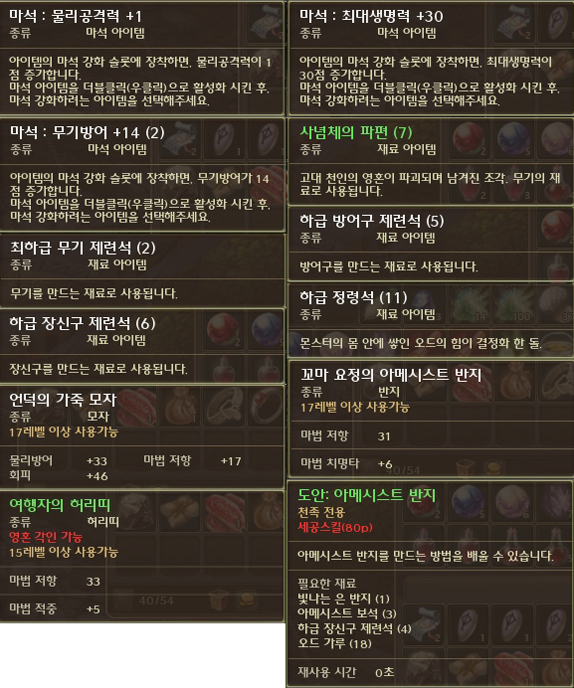 있고, 몬스터를 처치한후 전리품으로 획득 할 수도 있습니다. 하지만
