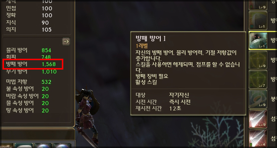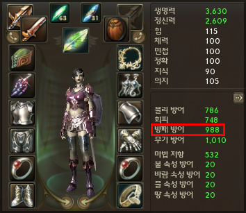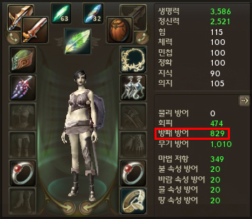 결과는 의외였다. 비록 최저 레벨이었지만 `방패`를 들고 있었고, 방패방어가 829였음에도 불구하고 방패로 방어를 전혀 못한 것이었다. 829라는