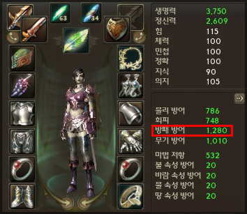 더 수치를 올려보면 방패방어율을 확실하게 뽑아 낼 수 있을 것 같아