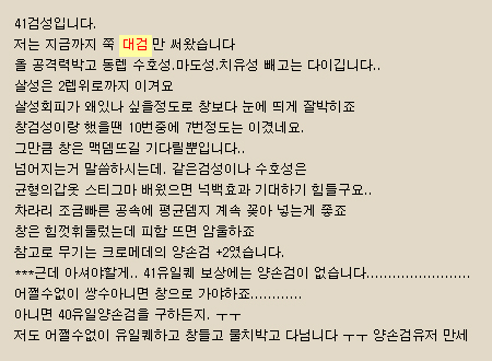 하지만 그렇다고 대검이 불필요한 무기라 할 순 없다. 그 이유는 대검의 높은 명중률 덕에 회피가 높은 상대와 전투 시 유리한 상황을 만들 수 있기 때문이다. 잠시 아래의 글을 보자.