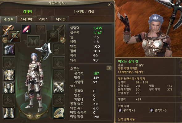 101마리 처치 / 미늘창 120처치) Q: 그렇다면 대검의 쓰임새는? A: 회피와 넉백 저항이 높은 살성 및 수호, 검성과의 PVP시에는 대검이 더 좋을 수도 있다. 하지만 회피와 넉백 저항이 없는 치유, 마도, 호법 등에게는 미늘창이 더 유리하다. 글 : 아이온메카 유저기자단 남윤서 |