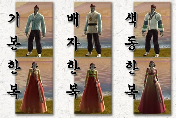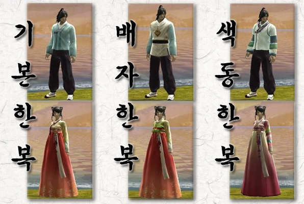 1. 신년을 기념하여 한복 아이템이 추가되었습니다. 각 종족 대도시 [고급 의상 판매점]에 있는 신성 의복 판매상 NPC에게 구입 할 수 있습니다. (교환 가능, 상점판매 가능, 창고/계정 창고/레기온 창고 저장 가능)