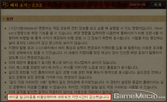 네이글 알고리즘을 자체적으로 삭제해버린 경우도 있으며, 마비노기에서는