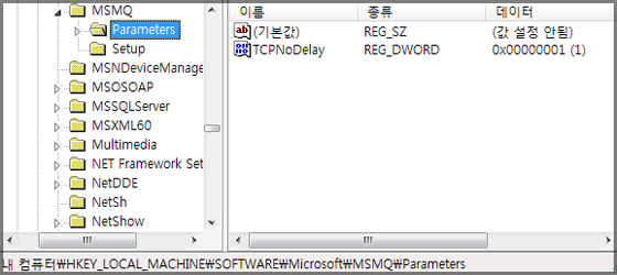 [HKEY_LOCAL_MACHINE/SOFTWARE/Microsoft/MSMQ/Parameters]