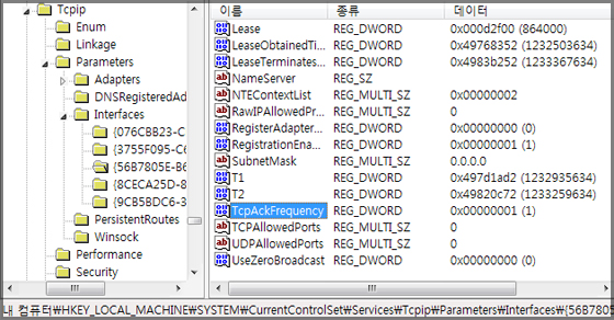 이 값을 조절할 수 있는 레지스트리 값이 바로 TcpAckFrequency다.