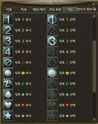 각 징표 표시 및 징표 선택 기능은 환경설정의 [키 설정] 탭에서 단축키를