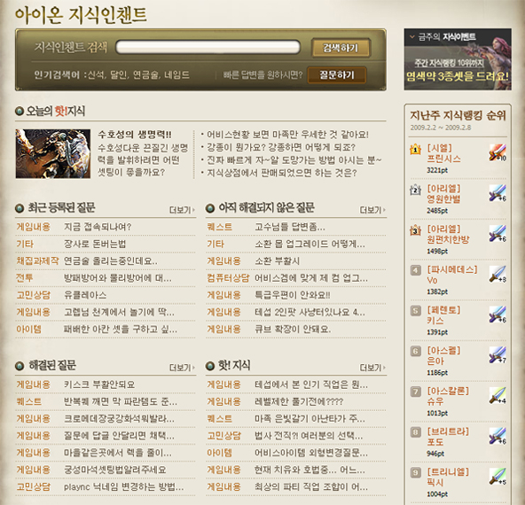 말로 아이온의 유저들이 질문과 답변을 주고 받으며