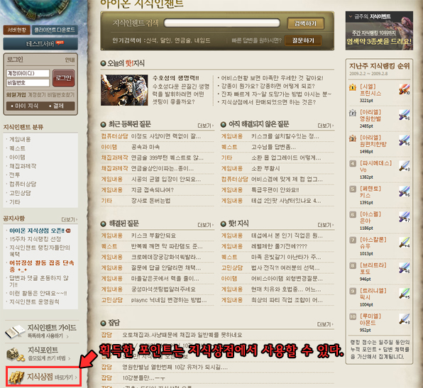 지식상점, 이벤트 등으로 게임에서 활용 가능한 아이템