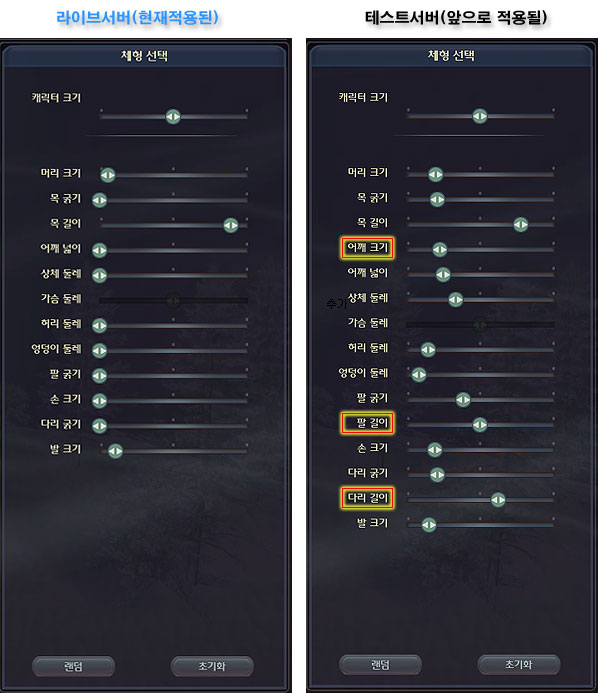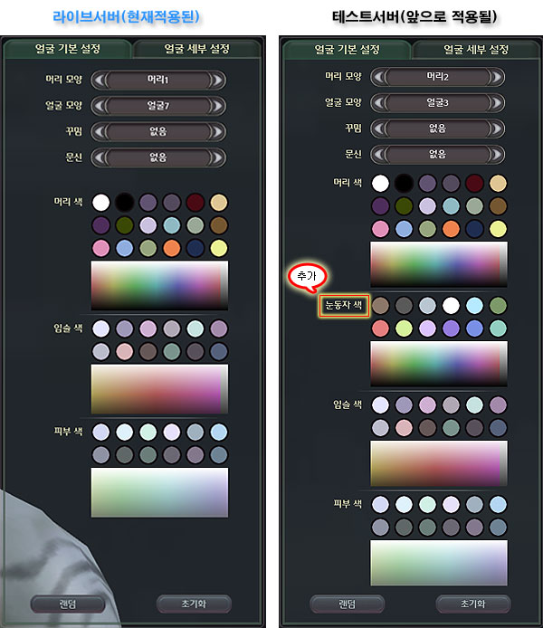 해줍니다. 아래는 테스트서버에서 적용된 캐릭터 커스터마이징에