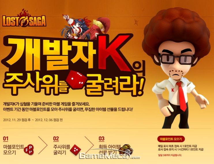 대전액션 온라인게임 '로스트사가' 가 29일(목), ‘개발자K의 주사위를 굴려라!’ 이벤트를 시작했다.