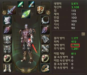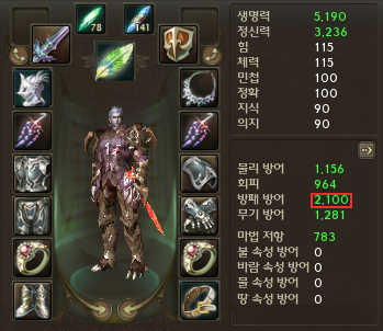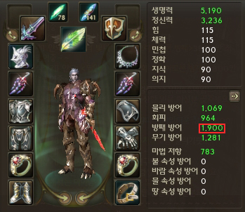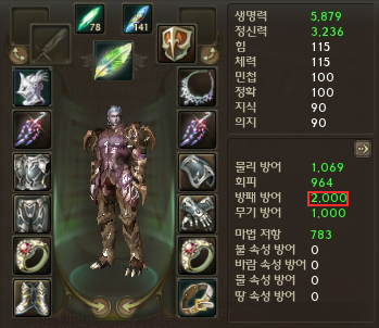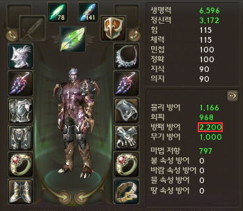 보통 명중이 높다고 평가되는 50레벨 살성의 명중 수치는 1600~1700 후반이다. 그러므로 방패 방어는 방어구와 마석 조합으로 2200~2300 정도면 충분하고, 남는 슬롯은 공격력이나 치명타, 혹은 생명력이나 마법 저항에 투자하자.