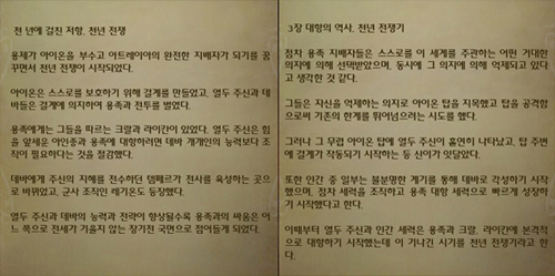 각 종족 역사서 `여명의 시대`(천족, 우)와 `고대 아트레이아의 역사1`(마족, 좌)에서 발췌.