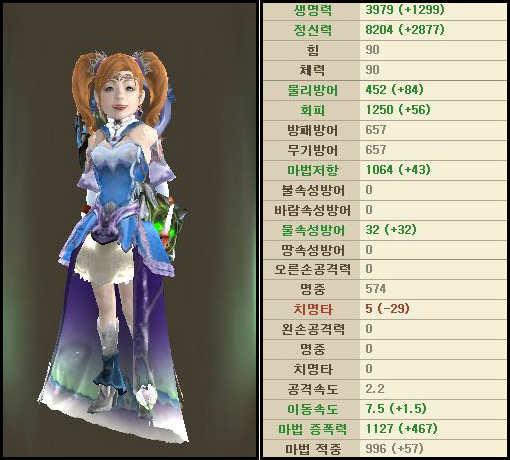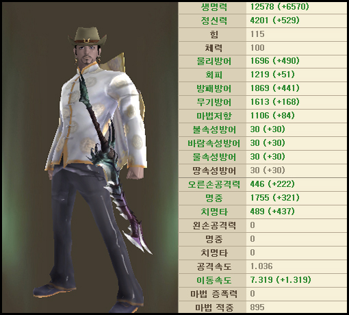 2위를 하신 존경님의 스탯과 무기입니다. 특별히 이렇다 할 특징은 보이지 않습니다.