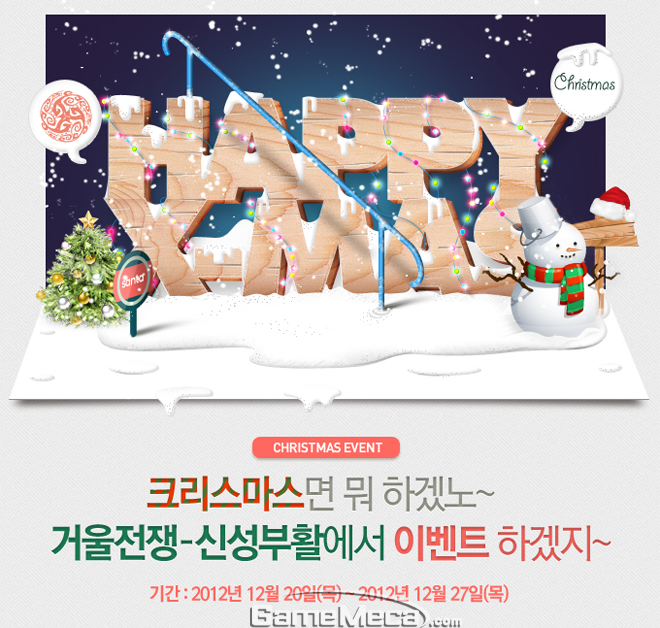 한편 크리스마스 이벤트 기간동안 매일 오후 2시부터 5시, 오후 7시부터 10시까지 흰 눈이 내릴 예정이다. 눈이 내리는 시간에는 신수의 축복을 받아 모든 사냥터의 아이템 드롭율이 2배가 된다.