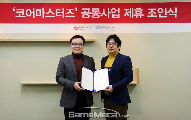▲ 네오위즈게임즈 윤상규 대표(좌)와 소프트빅뱅 이관우 대표(우) (사진 제공: 네오위즈게임즈)