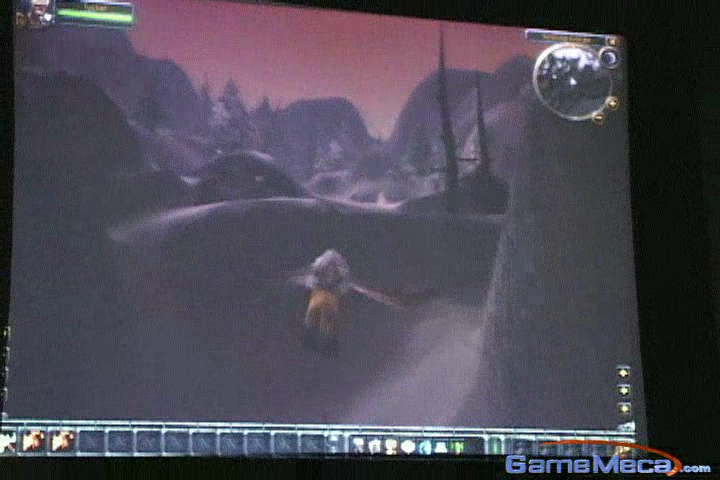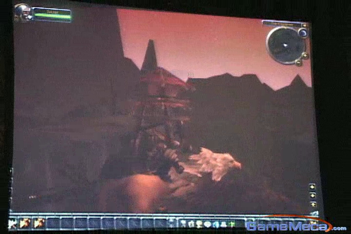 ▶오크 와치타워(Orchish Watch Tower)의 모습이다. 시연회에서는 와치타워가 아무런 반응을 보이지 않았지만 실제 게임에서는 공중을 이동하는 그리폰등을 공격하게 될지도 모르겠다(어쩌면 호드측의 플레이어가 직접 저 건물안에 들어가서 하늘을 이동하는 얼라이언스측 그리폰 이용자들을 격추하는 미니게임이 추가될지도 모른다). |