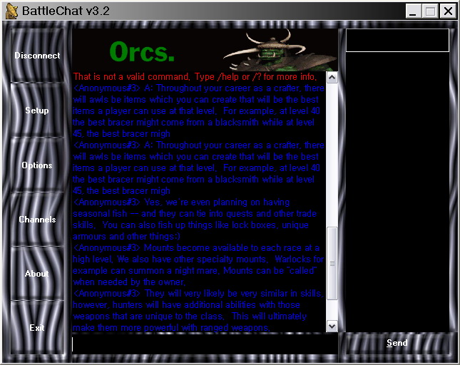 주목할 만한 내용으로 플레이어들은 게임의 인터페이스를 XML을 이용하여 직접 최적화시킬 수 있다는 점과 단체 주문을 사용하는 방법, 다크포탈과 관련된 이야기, 유니크 몬스터, 낚시를 이용한 아이템 획득 등이다. 요약한 대화 내용은 다음과 같다.