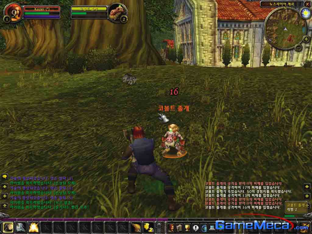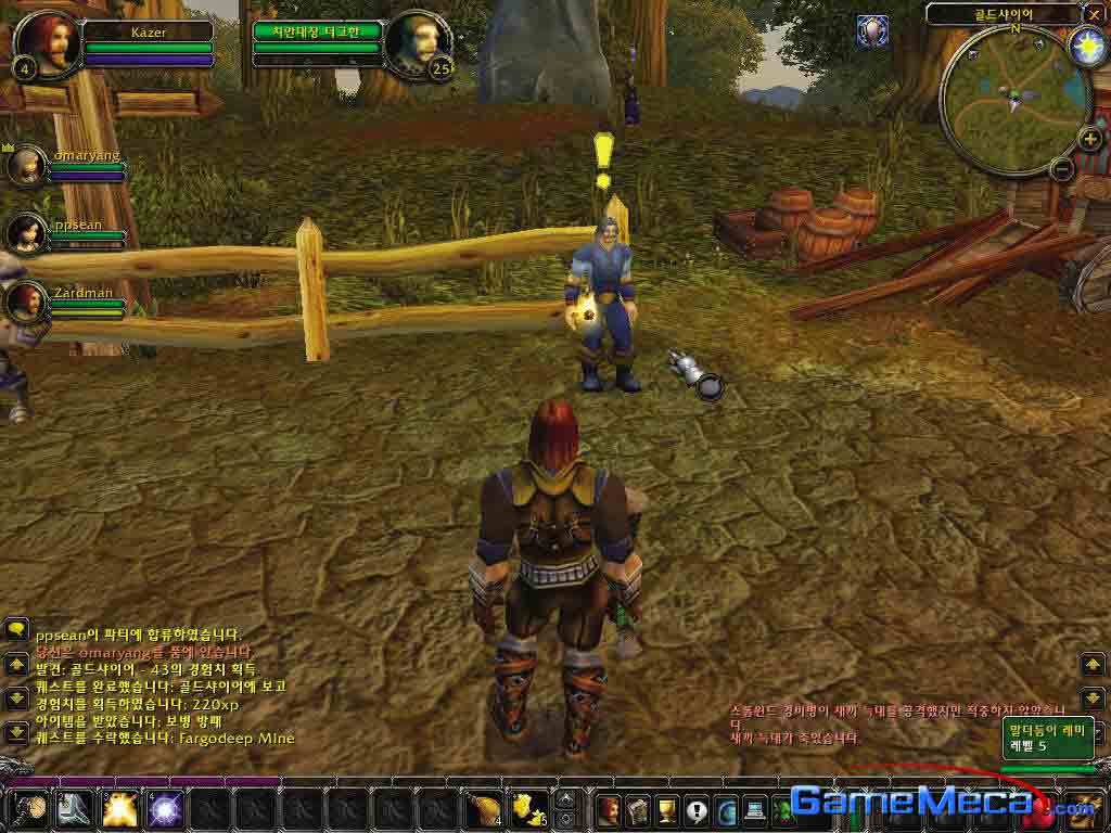 <WOW> 세계에 첫발을 내딛은 케이저는 휴먼의 마지막 보루, 스톰윈드 성 근처의 엘윈 숲의 작은 마을에서 모험을 시작했다. 시작하자마자 눈에 띈 것은 뭘 보고 놀랐는지 느낌표가 덩그라니 떠있는 치안대장 맥브라이드. 바로 이 느낌표가 현재 자신의 캐릭터가 수행할 수 있는 퀘스트를 지니고 있다는 표시다. 자신의 레벨에 맞는 퀘스트가 있다면 노란색, 그보다 높은 레벨이 수행하는 퀘스트가 있다면 회색 느낌표가 떠있다.