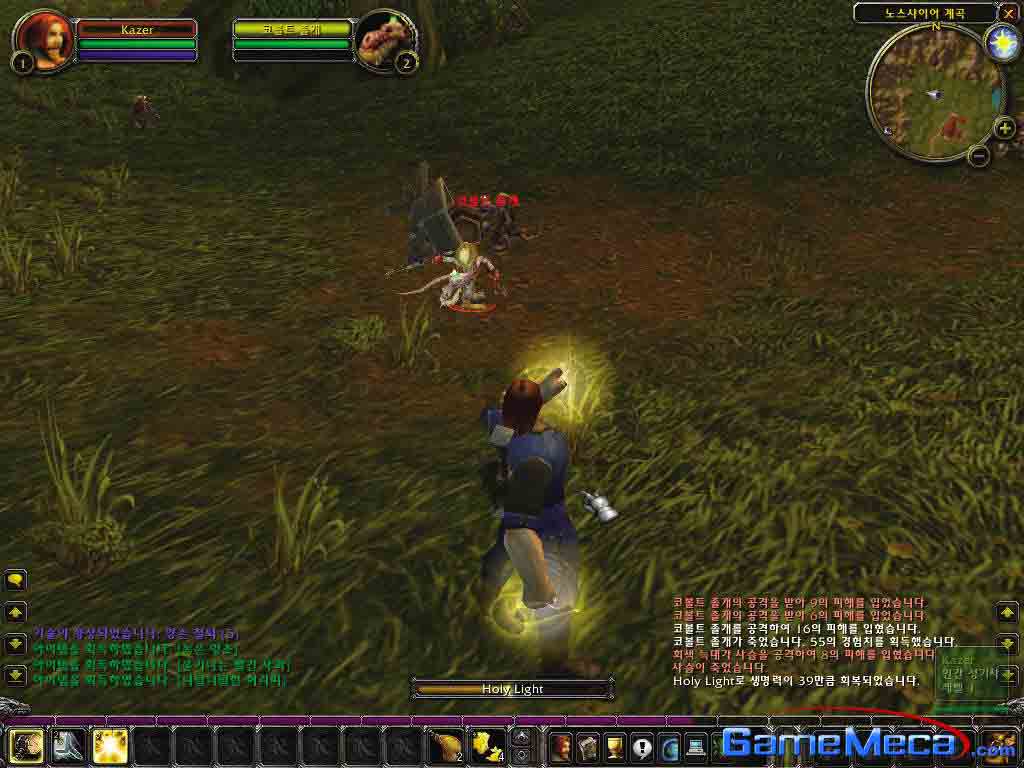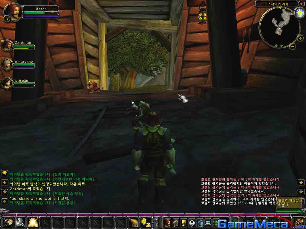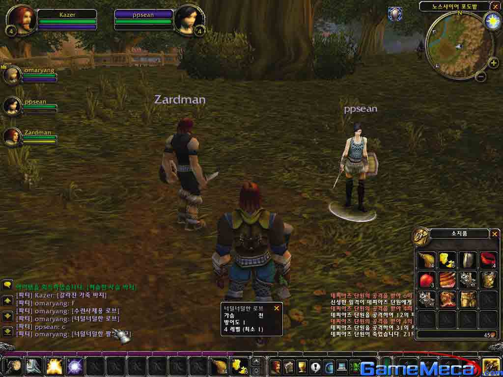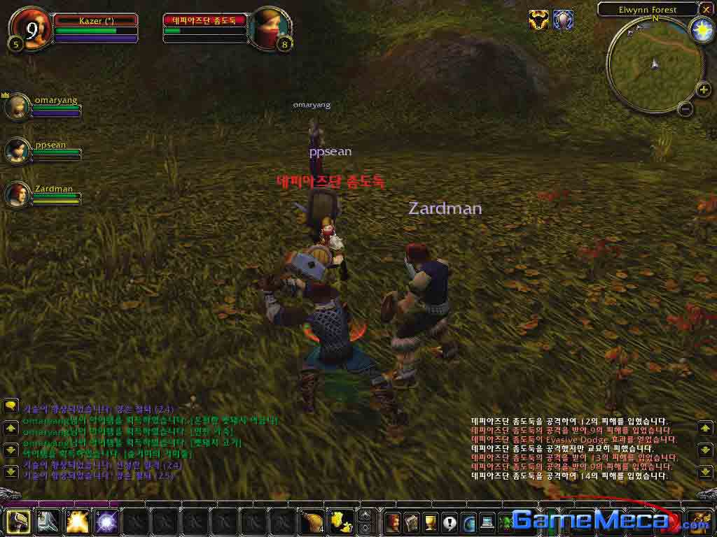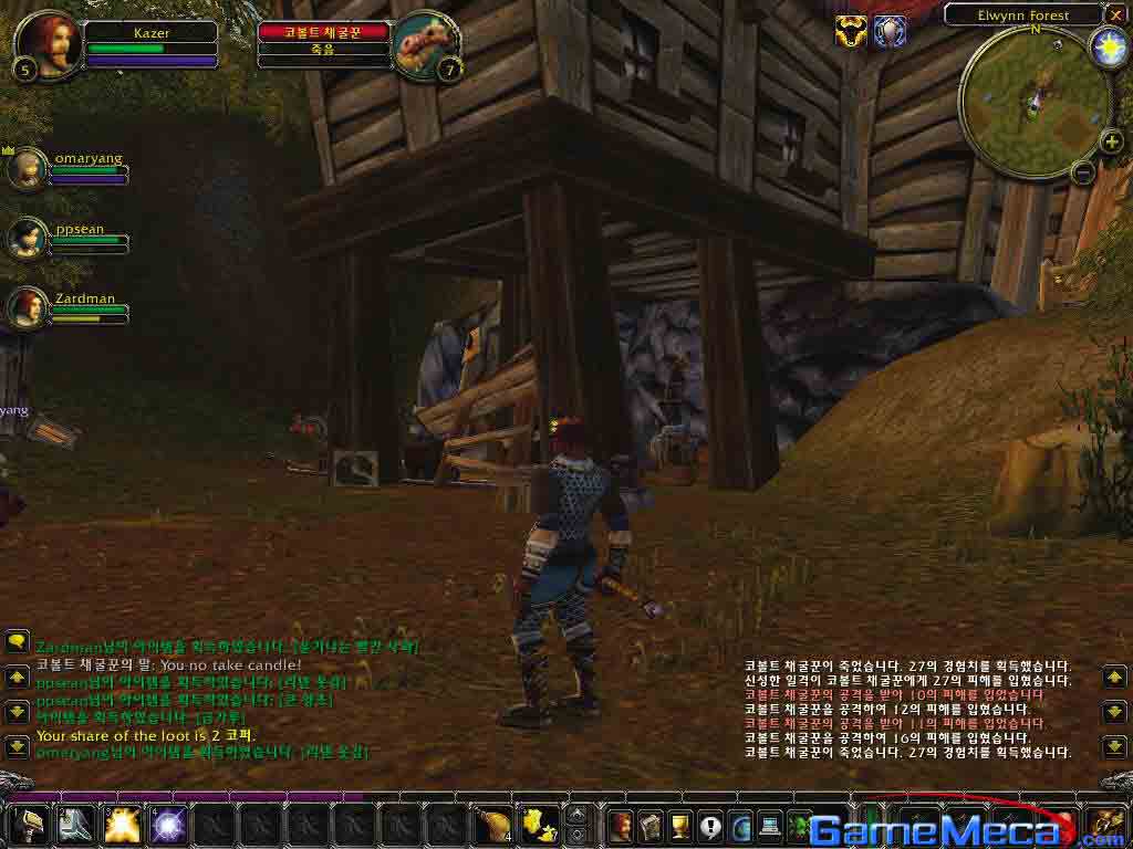 혼자서 신나게 코볼트 졸개를 잡고 있던 케이저. 뒤늦게 시작한 다른 기자들을 만났다. 이제 파티를 맺고 사냥 시작! 일단은 저레벨인지라 전가의 보도, ‘다굴’로 적을 처리했다. 몸빵이고 힐러고 없다. 그냥 막 패는거다. -_-; 느낌표가 떠있는 NPC만 골라 찾아다니면서 퀘스트를 클리어하다보니 시작한지 얼마 되지 않아 레벨 7에 도달했다. 그리고 퀘스트에서 시키는 대로 돌아다니다보니 어느새 엘윈 숲 이곳저곳을 다 뒤지며 돌아다니게 됐다.