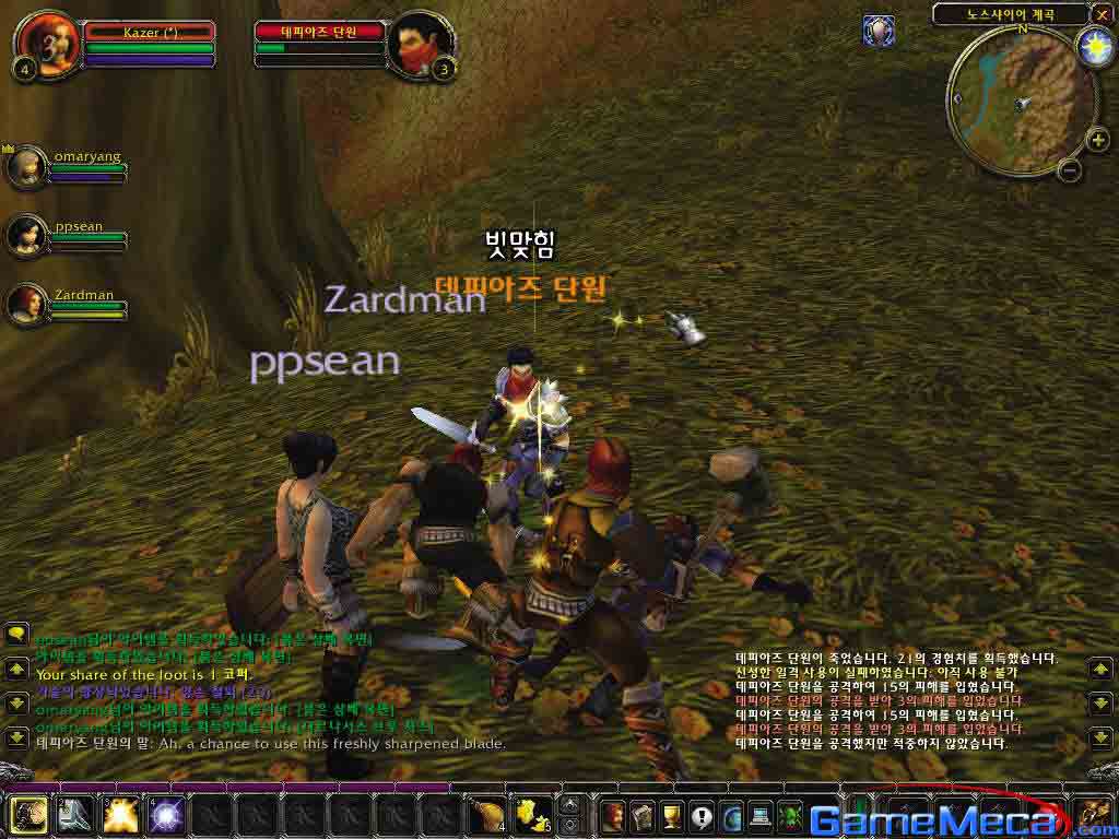 어쨌든 본 필자를 비롯해 총 4명의 한국 게임지 기자가 한글판 <WOW>를 미리 플레이해볼 수 있는 기회를 갖게 됐다. 간단한 튜터리얼을 개발자에게 직접 듣고 휴먼과 드워프 종족을 선택해서 플레이할 수 있는 기회를 얻었다. 4명의 기자단(?)은 파티를 맺고 하면 레벨업이 빠르다는 조언에 일단 휴먼부터 플레이하기로 결정했다.