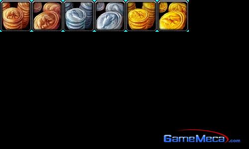 ▶<WOW>에 등장하는 화폐. 금화, 은화, 동화의 3종류가 있지만 막상 은행엔 맡길 수 없다
