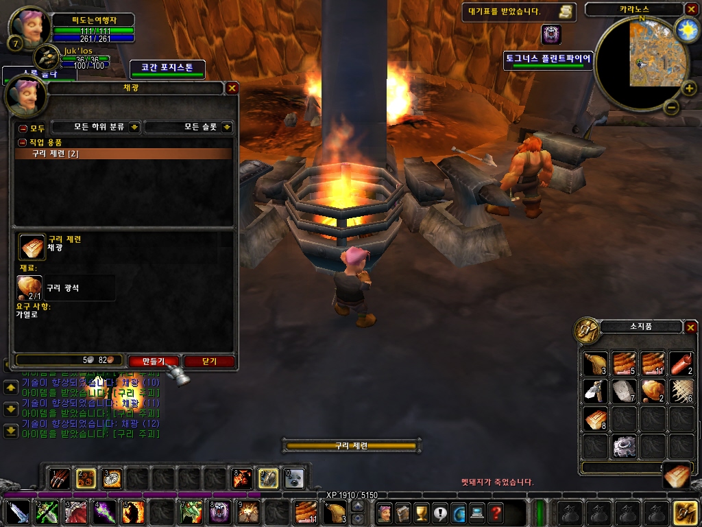 랩5쯤 되셔서 일단 "전문 광부"에게서 채광을 배우셔서 광석을 한아름 모아두신후 그 이후 SP가 모이면