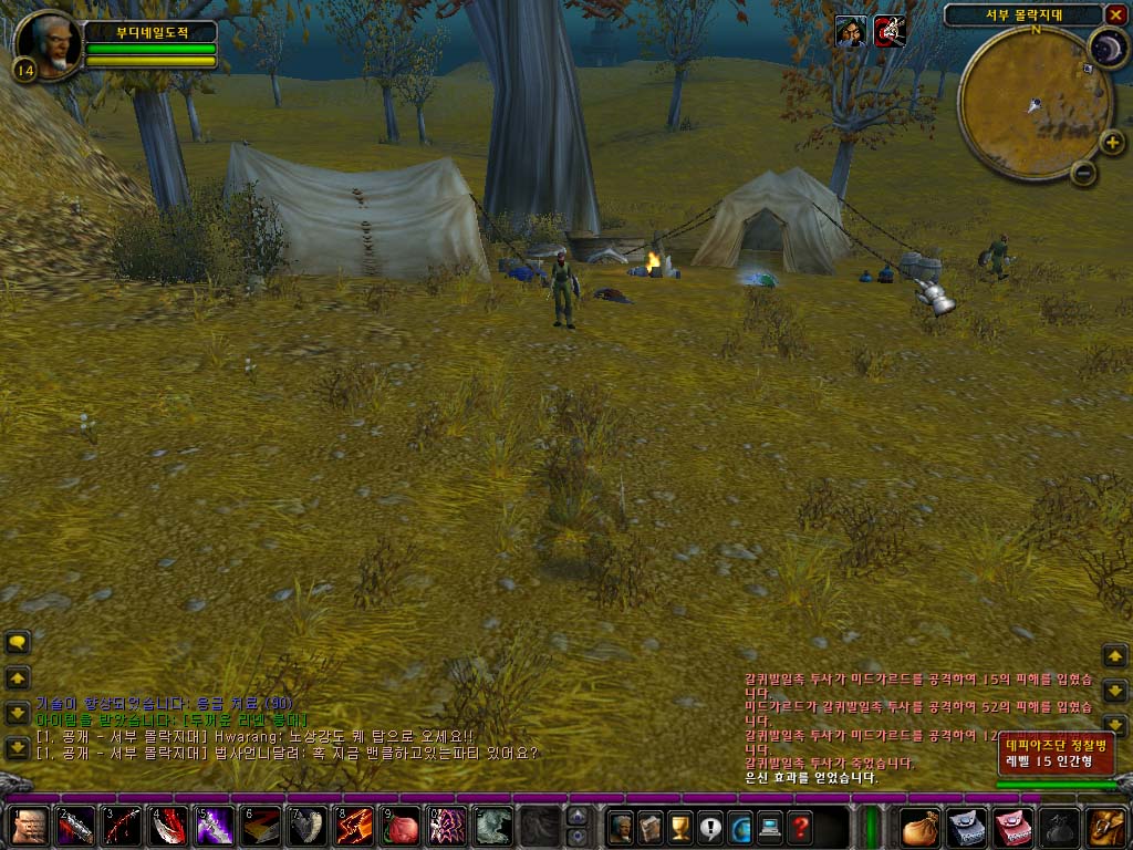 우선 기존의 도적과 같이 은신 을 합니다. (Tip 은신의 숙련도 올리기: 몹에게 어느 정도 다가갑니다. 몹의 어그로 경계에 들어가게 되면 몹에게 반응이 옵니다. 소리를 내면서 플레이어 쪽으로 방향을 틉니다. 주변에 뭔가가 있다고 눈치를 챈 것이죠, 이 상황 그대로 은신한 채 유지를 합니다. 물론 몹은 로밍을 하지 않는 제자리에 서있는 몹이어야 합니다. 그러면 계속 올라가는 은신 숙련도를 볼 수 있을 것입니다.)