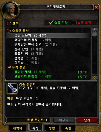 기습 기술을 사용할 수 없습니다. 현재 와우에서 기습이라는 스킬은 초반에 나오지만 거의 도적의 주 스킬이라고 할 수 있을 정도의 강력한 기술입니다. 이것을 사용하지 못한다는 것이 도적으로서는 큰 단점으로 작용할 수 있습니다. 이 기술은 듀얼시에도 상대방의 뒤만 잡으면 쓸 수 있는 기술이라서 상당히 중요합니다. 나중에 이 기술대신에 검으로도 쓸 수 있는 암살 기술이 나오긴 하지만 기습만은 못하다는 ^^;(하긴 검의 데미지로 기습을 하면, 살아남는 사람이 없겠죠)