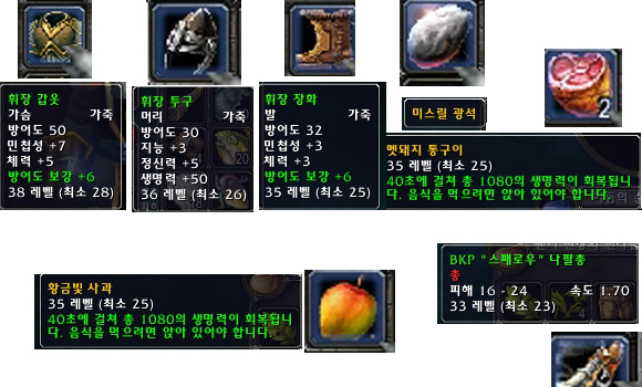 자..이게 동굴에서 먹었던 아이템들입니다. 꽤 고가아이템인 도적들이 즐겨사용하는