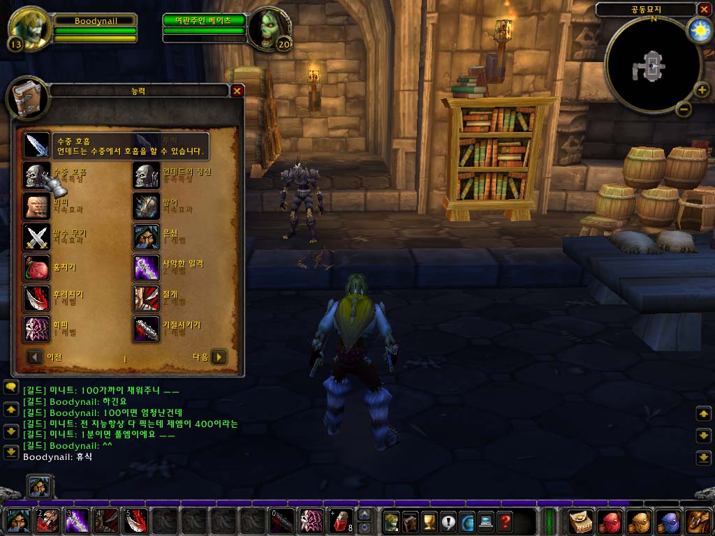그리고 대부분의 직업이 직업전용 퀘스트를 가지고 있습니다. 다른 직업에 대해서는 아직 모르겠구요, 언데드 도적은 10레벨에 브릴에서 시작해 언더시티로 이어져 진행하는 것이 있는데, 퀘스트 결과는 경험치와 단검입니다.(이거 차지전에 쓰던 단검에 비하면 거의 두배의 데미지가 ^^)