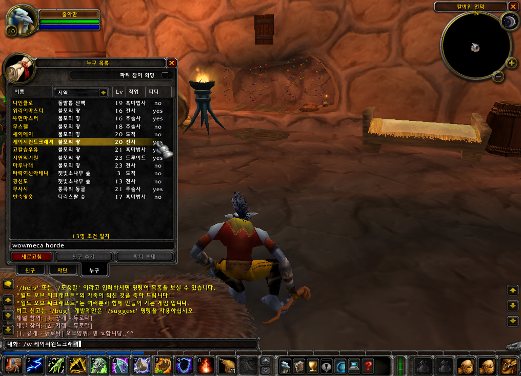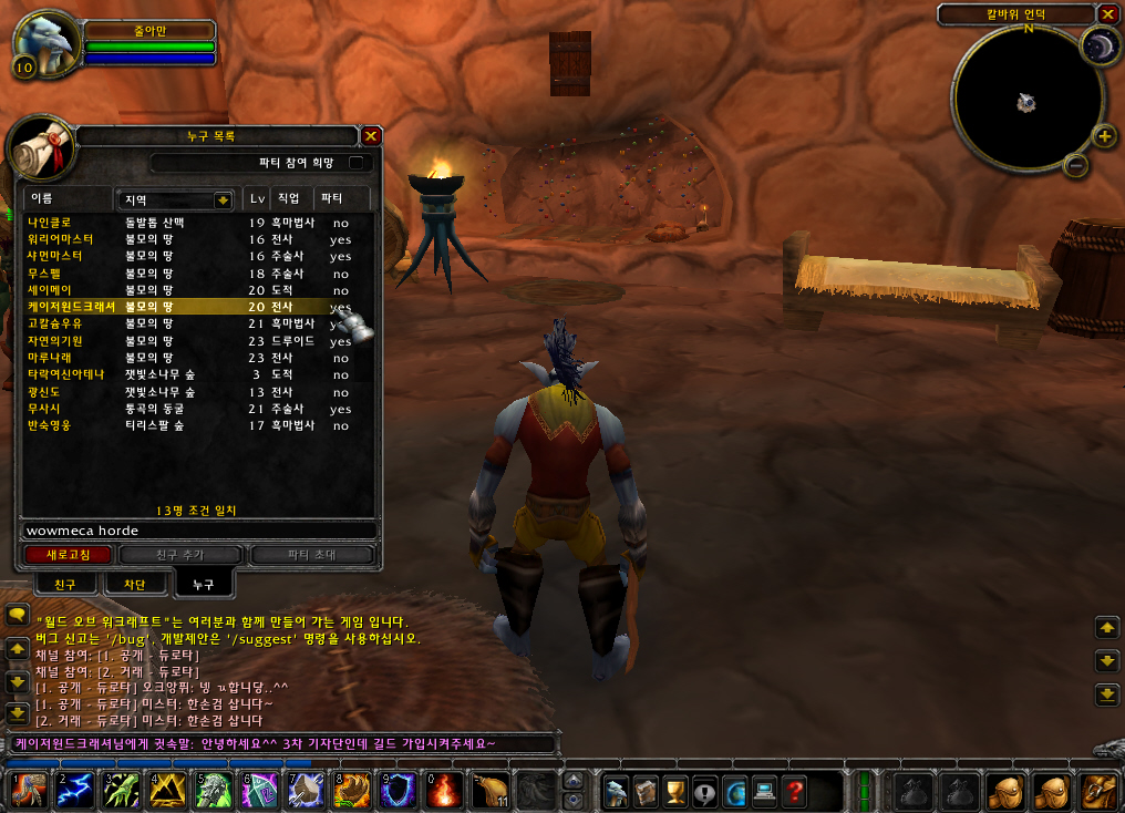 채팅창에 /who wowmeca horde 라고 입력합니다.
