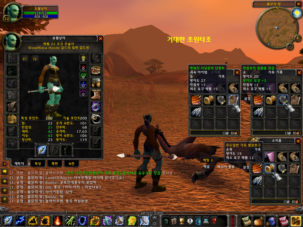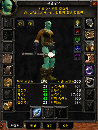 일단 테스트에 임한 나의 캐릭터는 22렙 주술사로, 모든 장비를 갖춘 채 측정한 방어도는 184이다.