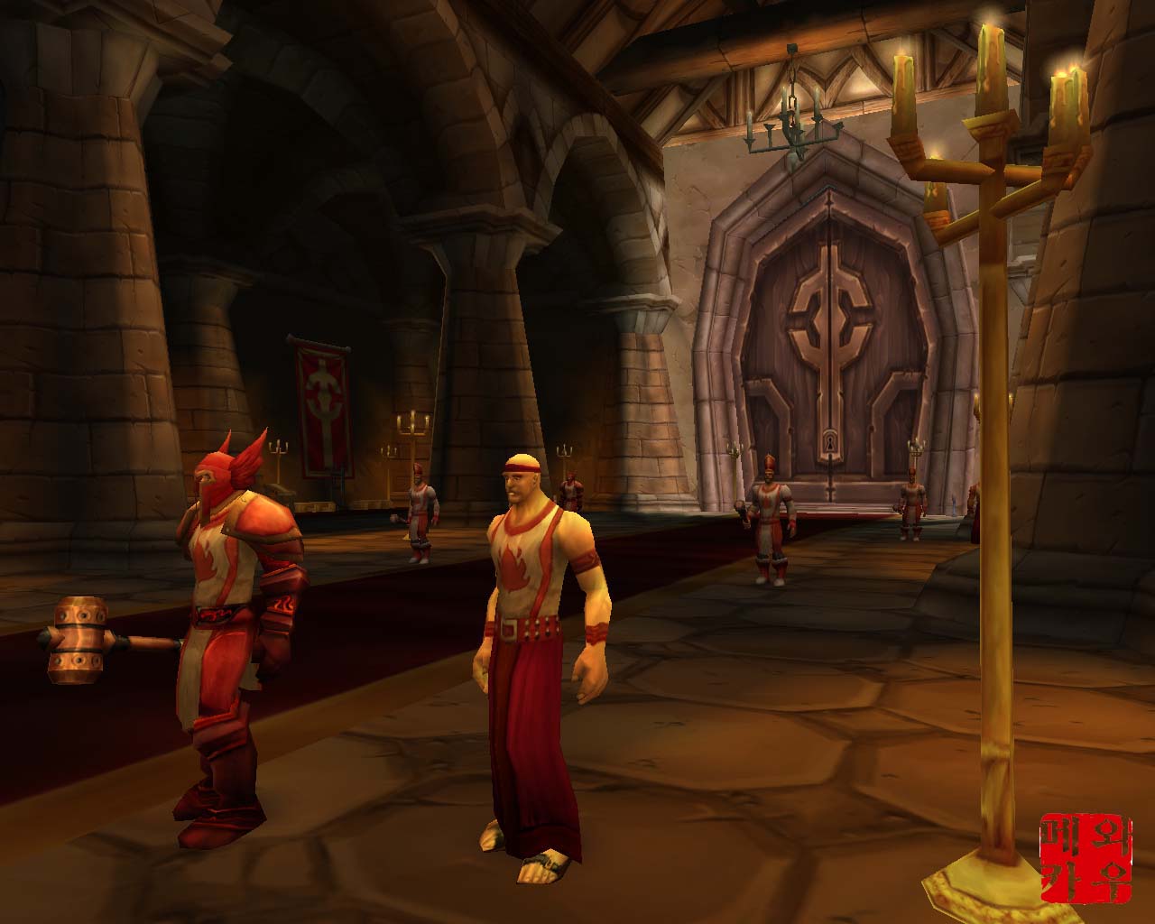 붉은 십자군 수도원 내부와 등장하는 NPC들의 모습이다. 이곳 역시 인스턴트 던전이 존재하며 특이하게도 동시에 4곳의 인스턴트 진입로 마련되어 있다. 플레이어들은 각각의 인스턴트 던전에서 열쇄를 획득하여 봉인되어 있는 다른 인스턴트 지역에 순차적으로 진입하게끔 되어있다.