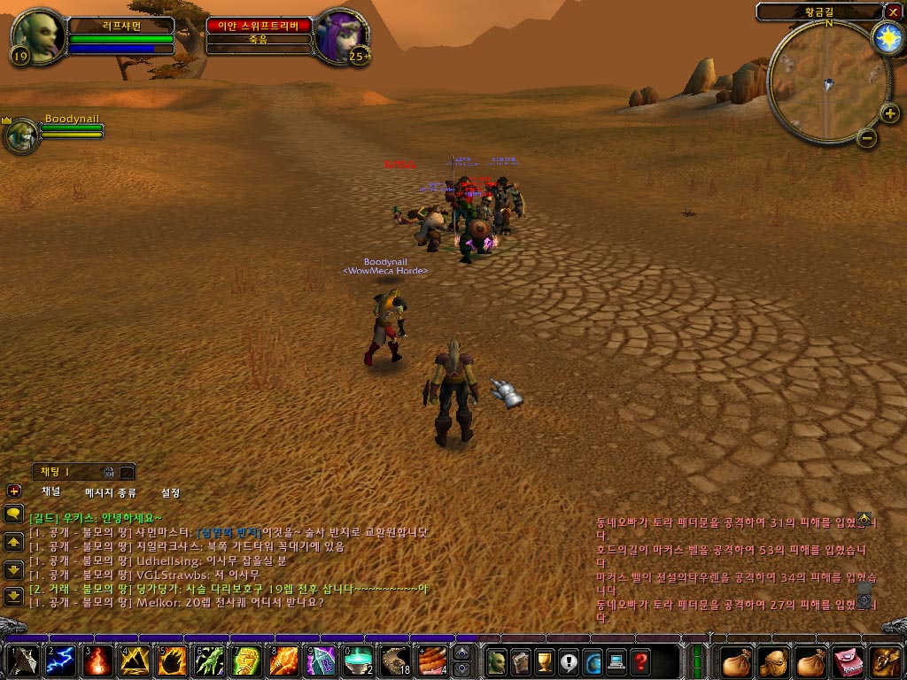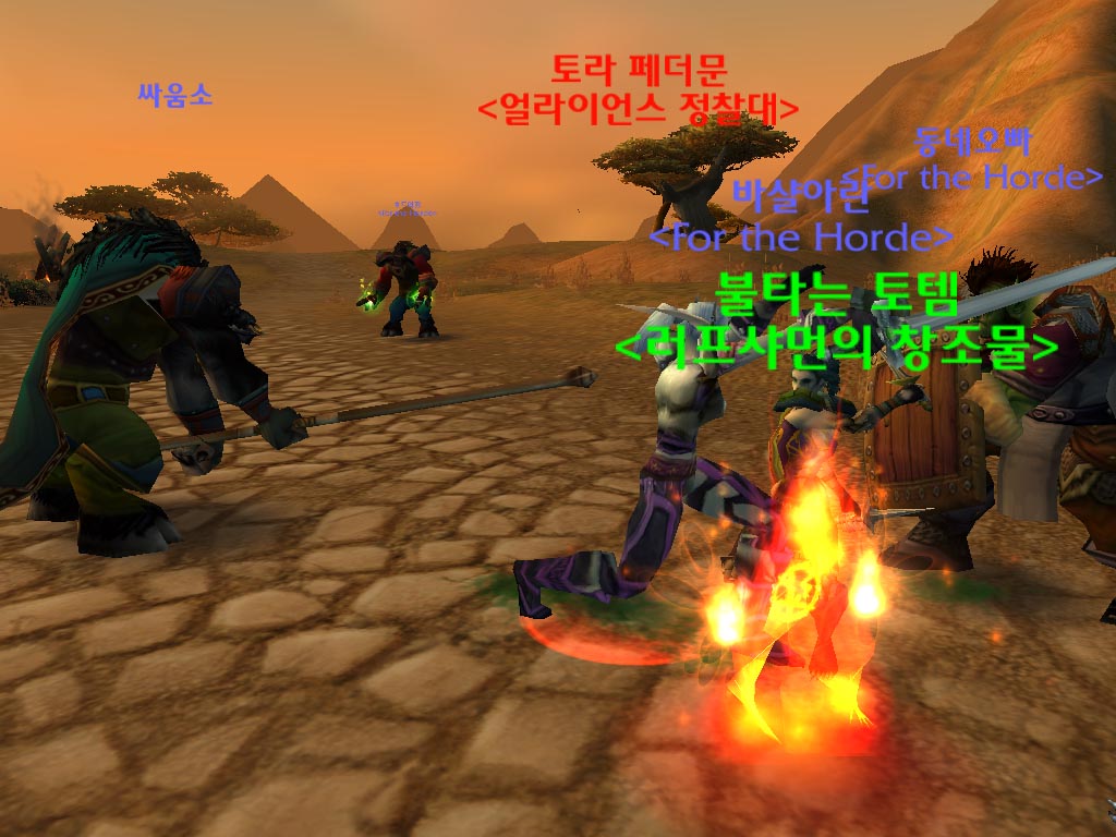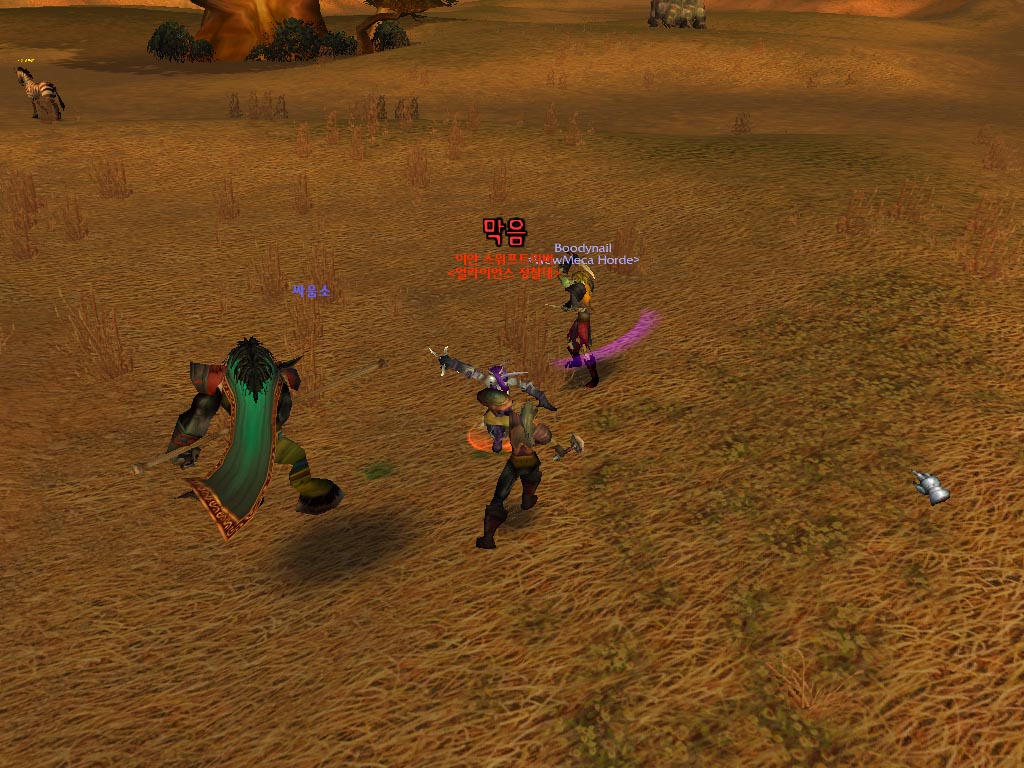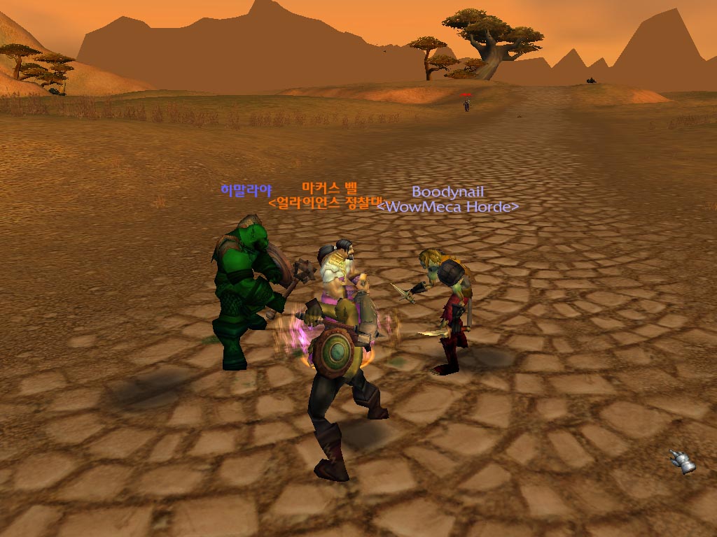 어쨌든 이들은 24~25+ 레벨을 갖춘 4~5명의 무리들로 칼림도어 대륙 불모의 땅 남단에서 정찰대 활동을 펼치고 있습니다. 그날도 어김없이 퀘스트 해결을 위해 와우메카 기자단 부디네일님과 쫄래쫄래 길을 달리고 있었습니다.