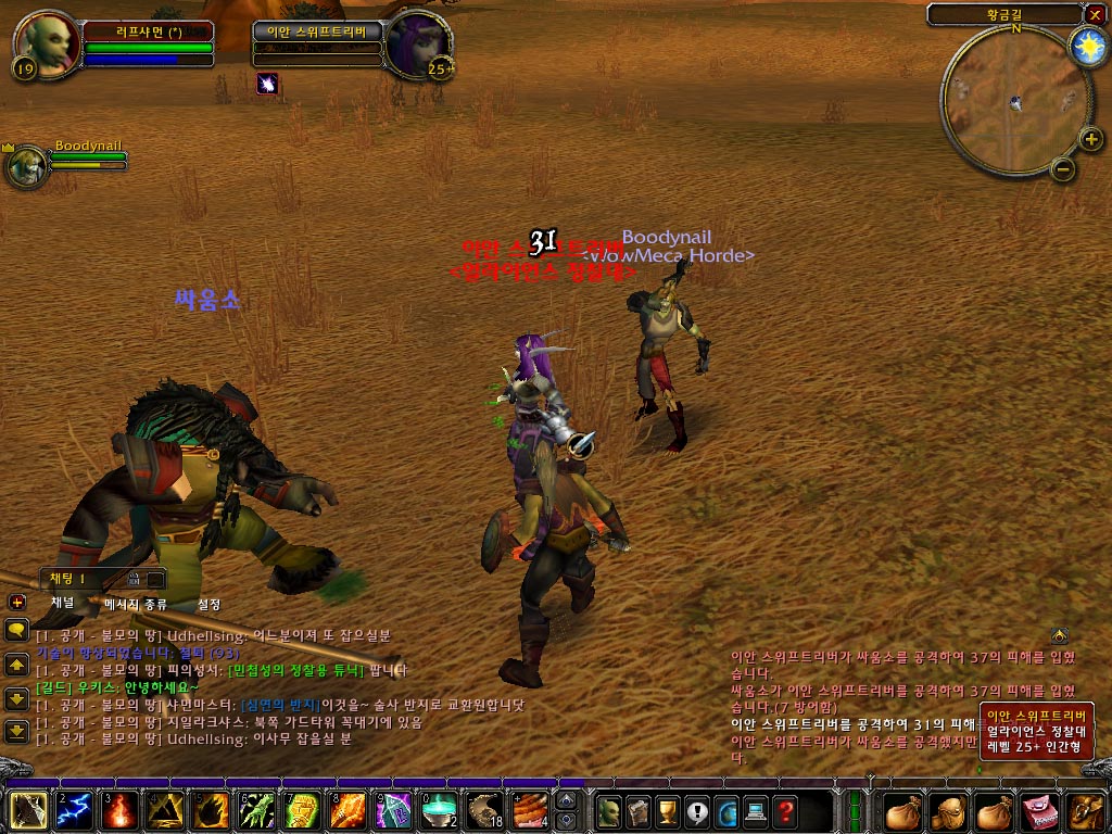 티리스팔 숲에서 20레벨을 만들고 넘어온 부디네일님. 어두침침한 곳에서 살다나온 부디네일님은 호드의 사바나 분위기에 적응되지 않는듯한 모습이었습니다. 어쨌든 톱니항에서 우연히 만난 부디네일님과 전 비슷한 레벨을 유지하고 있었기에 함께 퀘스트를 해결해보기로 했죠. |