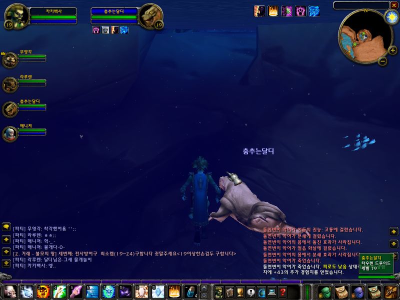드루이드님이 물속에 들어가시더니..물개로 변신하셔서 노시더군요..보고 있으면 넘 웃김니다. 머 공격능력이 있는지는 모르겠지만요..물개, 사자, 곰 등으로 변신하는 모습을 많이 봤습니다.