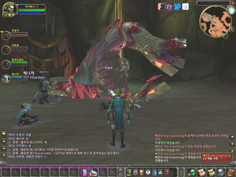 이것으로 통곡의 동굴레이드를 마칠까합니다. 총5시간이상이 소요된 레이드였지만 지면관계상 이정도의 스삿과 내용으로 소개를 마칠까 합니다. 앞으로 많은 분들이 이 레이드에 참가 하시겠지만 와우의 레이드..정말 감격입니다..흑흑 몇 번을 입구부터 들어 갔는지도 모릅니다. 그 덕택에 모든 파티분들이 렙업을 하셨담니다.