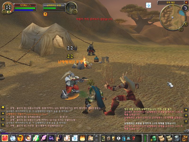 그런데 해변가에 해적들이 상당히 있군요 텐트까지 치고 아주 돗자리를 깐듯.. 그곳을 계속 지나 가다보니 성간은 것이 보이는데 그곳이 바로 문제의 해적 전초기지.. 지키는 병사들도 많이 있고..^0^ 하지만 고렙의 사제에게는 껌딱지나 다름없는 녀석들..흐흐흐