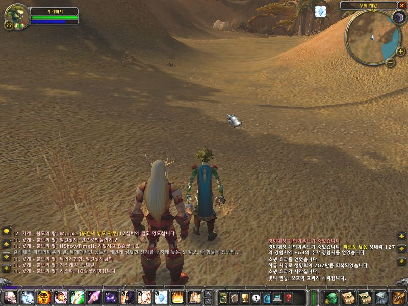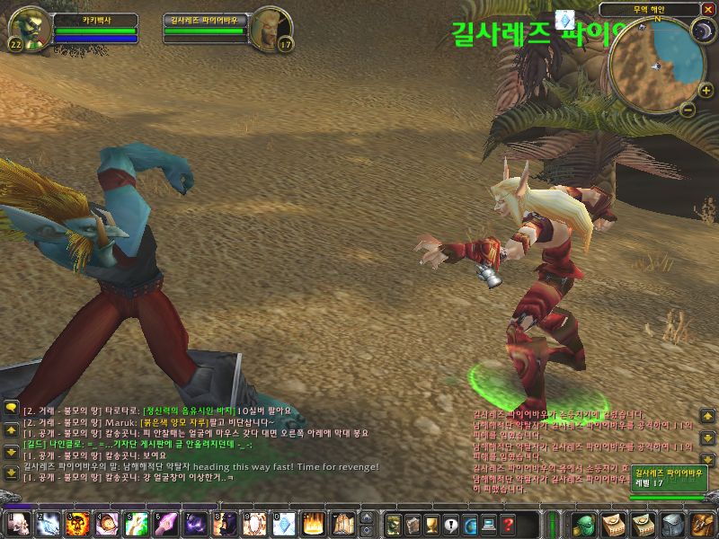 음..그 죄수 렙이 17이더군요 머 그럭저럭 죽지는 않겠군..생각하면서 졸졸 따라가고 있었는데.. 혹시라도 앞에서 몹이 나타나 덥치면 금방 픽~하고 죽을 줄 알았는데.. 오~ 저 름름한 모습 몹이 달려오기전에 먼저 가서 패버리더군요..^^;;;; 될 수 있으면 싸움은 피하고 싶었는데.. 그런데 계속 보고 있으니 엄청 잘 싸움니다. 주먹질 하는 폼하고 오~ 정말 놀라운 실력을 가지고 있더군요.. 저 옆에서 구경하고 혼자 잡습니다.