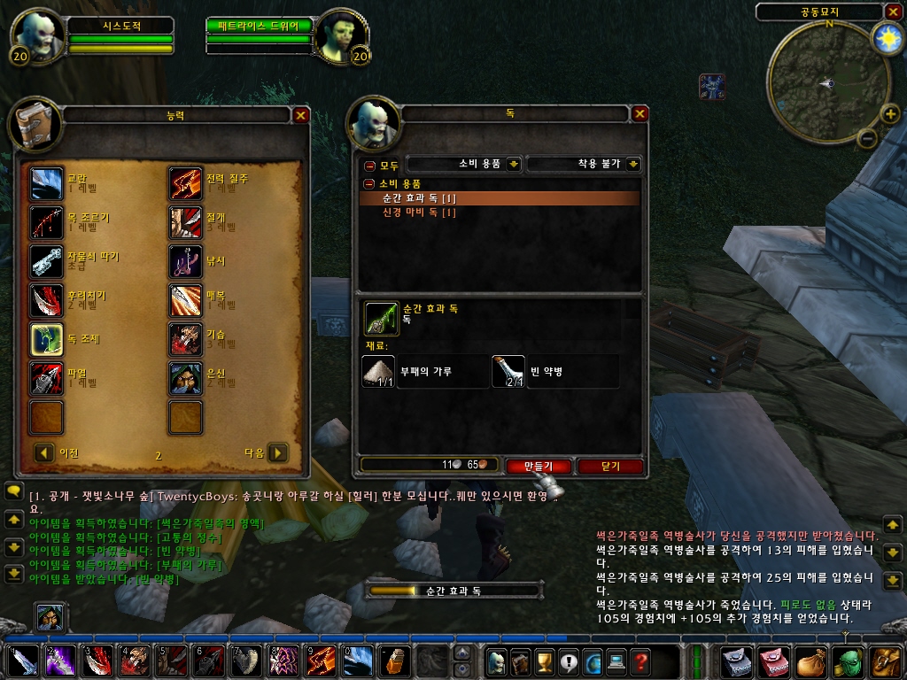 독제조는 레벨 20때 처음배웁니다. 제가 제일 기대햇던 스킬이구요. 어느정도 만족하고 있습니다.