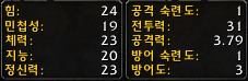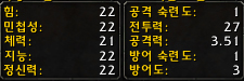 [공식] (힘X2)X0.07= 힘수치에 의한 공격력, (민첩X1)X0.07= 민첩수치에 의한 공격력