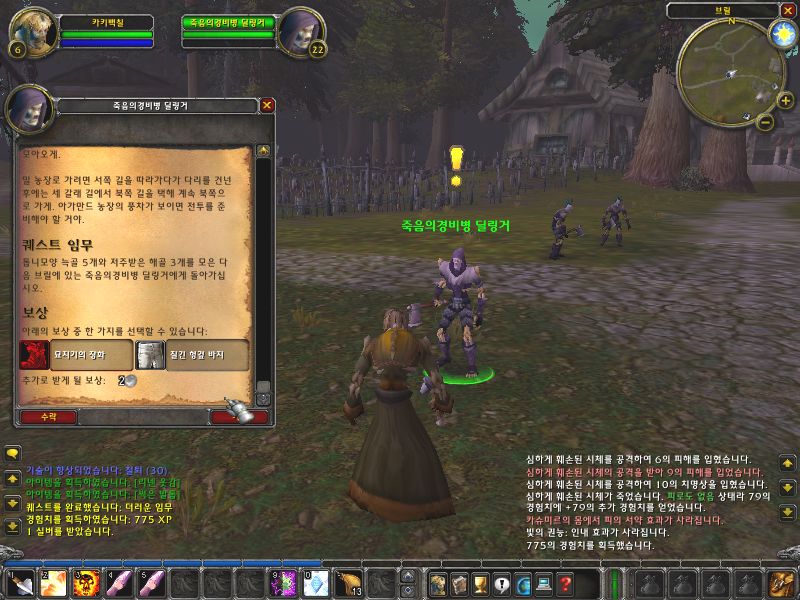 브릴에서 받은 퀘스트를 10레벨 정도가 될 때까지 수행하고 10레벨이 되면 이제 잿빛소나무 숲에 있는 공동묘지로 이동을