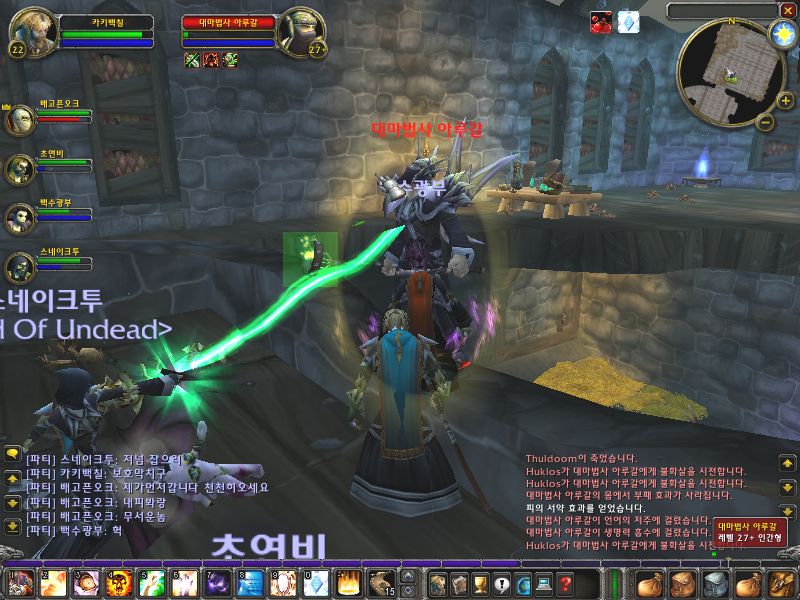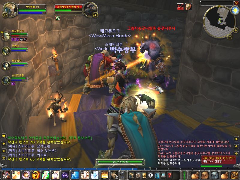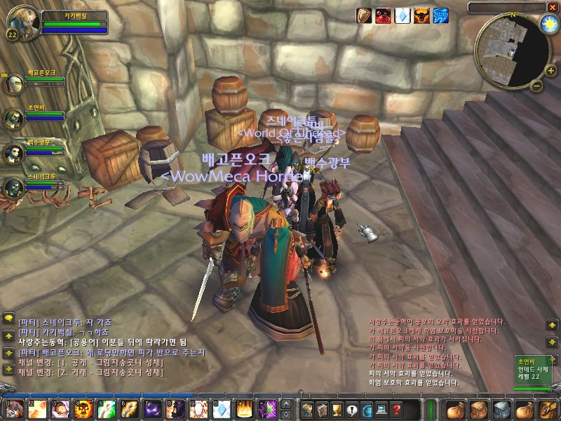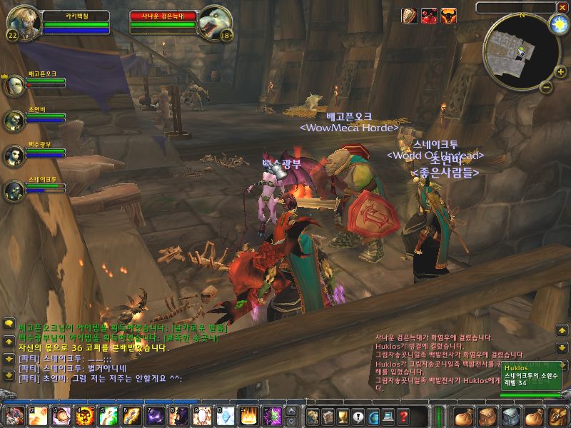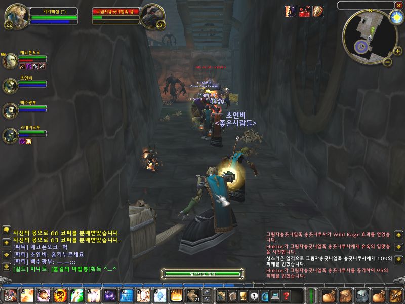 파티 구성 2사제, 2흑마, 1전사 파티로 초연비님이 메인 힐러를 하시고 카키백칠은 데미지딜러와 보조 힐러로 흑마 2분은 데미지 딜러 오크님은 풀링과 탱커의 역할을 담당하였다.